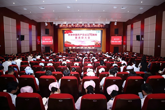 6月27日,普仁医疗集团召开简朴而隆重的庆祝中国共产党成立98周年暨表彰大会,二院、五院全体院领导、在职及离退休党员代表、民主党派代表、管理干部、入党积极分子等300余人参加了会议。会议由黄金城 党委副书记、纪委书记赵鸽同志主持,黄金城 党委副书记、市五院党委书记鲁晓杰同志讲授专题党课。